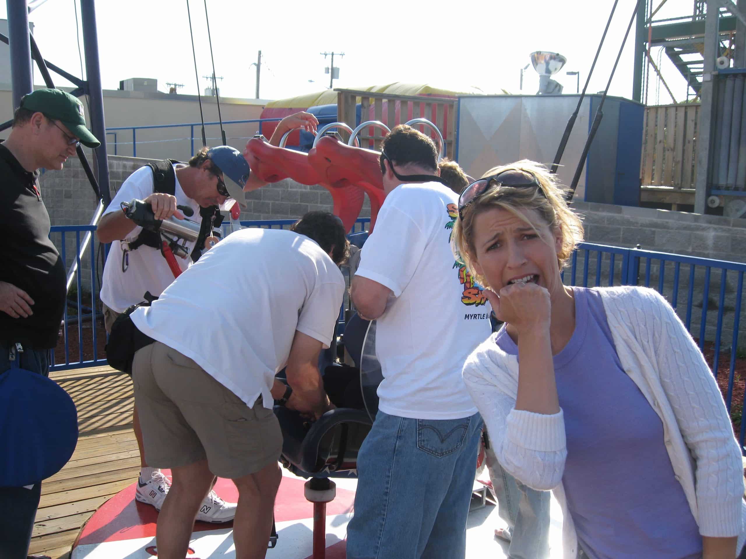 Behind me is my crew of Great Weekends Myrtle Beach figuring out how to rig the camera to a seat that will literally become a slingshot hurling me at 75 mph 300 feet in the air. I'm hoping the camera…
