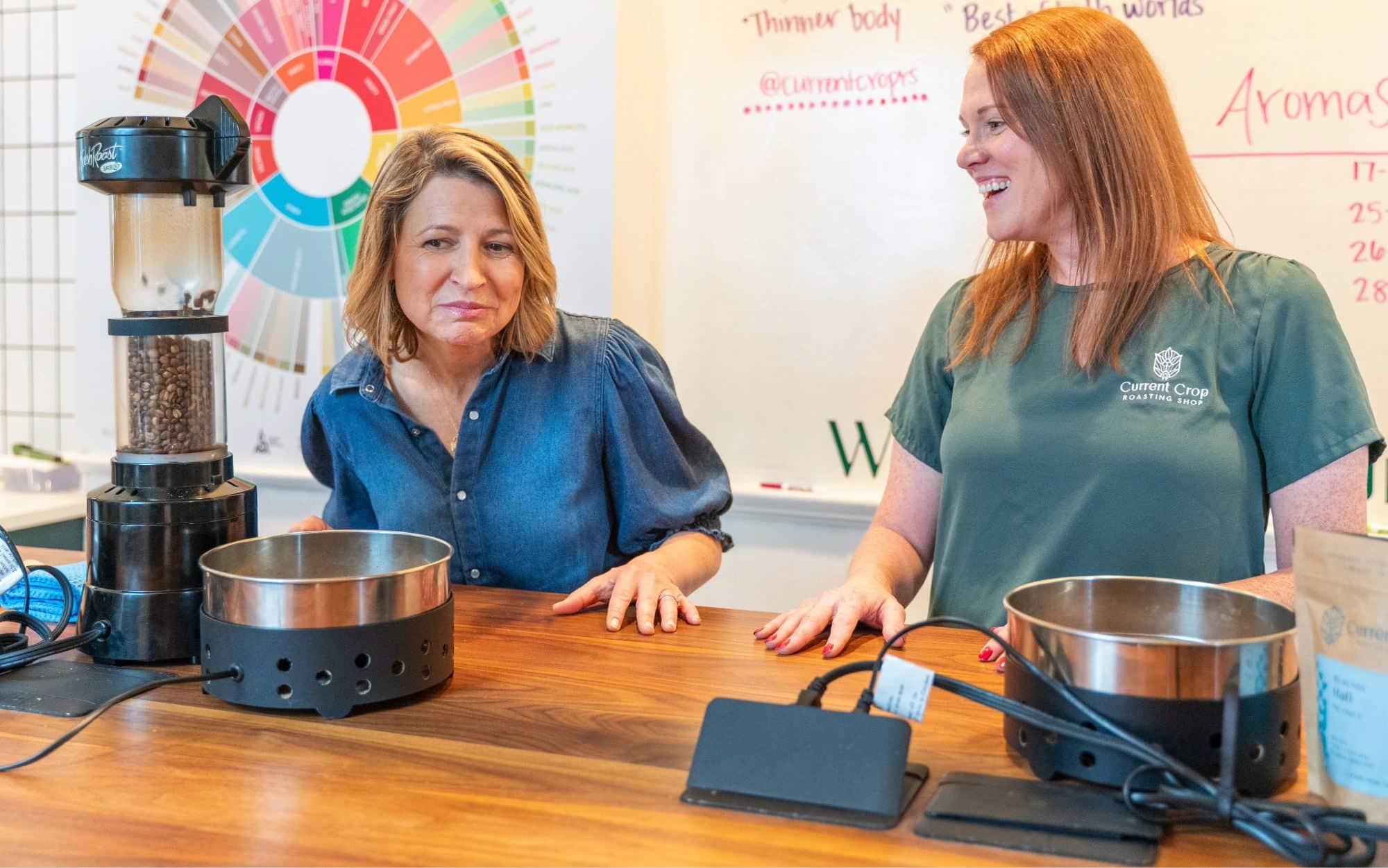At Current Crop Roasting Shop, you get to be part of the entire process of creating coffee. Their bean library has about 78 different coffee beans from all over the world – Asia, North America, Africa, Central America and more. Once you choose your beans from the library, you decide the level of roast you prefer, from light to dark. This is where you get to add your personality to the coffee. Catherine Mansell walked me through the process and helped me create two delicious blends of coffee. Both made delicious cups to start the day!
