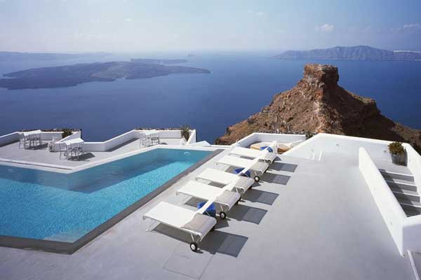 For me, this is where a pool crosses over some sort of line and becomes art. The stark contrast of the rugged coastline, uninterrupted views across the Caldera, pristine blue waters and the modern, stark white vibe of the largest infinity pool in Santorini is something quite special. It might just spoil you for every other pool on the planet.