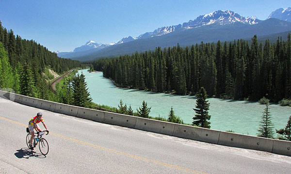 Have you had a chance to tour Banff National Park and Lake Louise? If not, you should consider seeing this part of the Canadian Rockies by bike. You’ll find yourself smack-dab in the middle of some of the Earth’s finest mountains, glaciers, and aquamarine-colored lakes. Your two wheels and pedal power will take you down one of the most beautiful stretches of road anywhere called the Icefields Parkway. You’ll ride along the Continental Divide and spend your time with wildlife such as bears, elk, mountain goats, and bighorn sheep staring at you as you pass by.