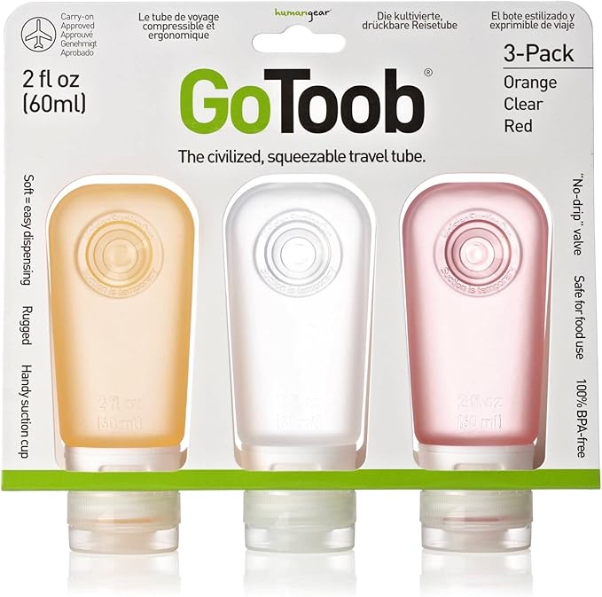 As a generally cheerful person, you would be amazed how many travel pet peeves I have accrued. Take for instance the rigid plastic bottles for TSA approved liquids that most drug stores sell. Let’s be honest – you can really only ever fill them once because it’s nearly impossible to clean them out. Cue – GoToob. They make it super easy to do all that with their soft silicone squeezable bottles with extra wide openings. They also have handy suction cups that stick to the hotel shower, so you’ll be free from my other travel pet peeve, toiletry bowling. AKA the act of knocking down all those tiny shampoo, conditioner and bath gel bottles that the hotel fits on the small soap holder.